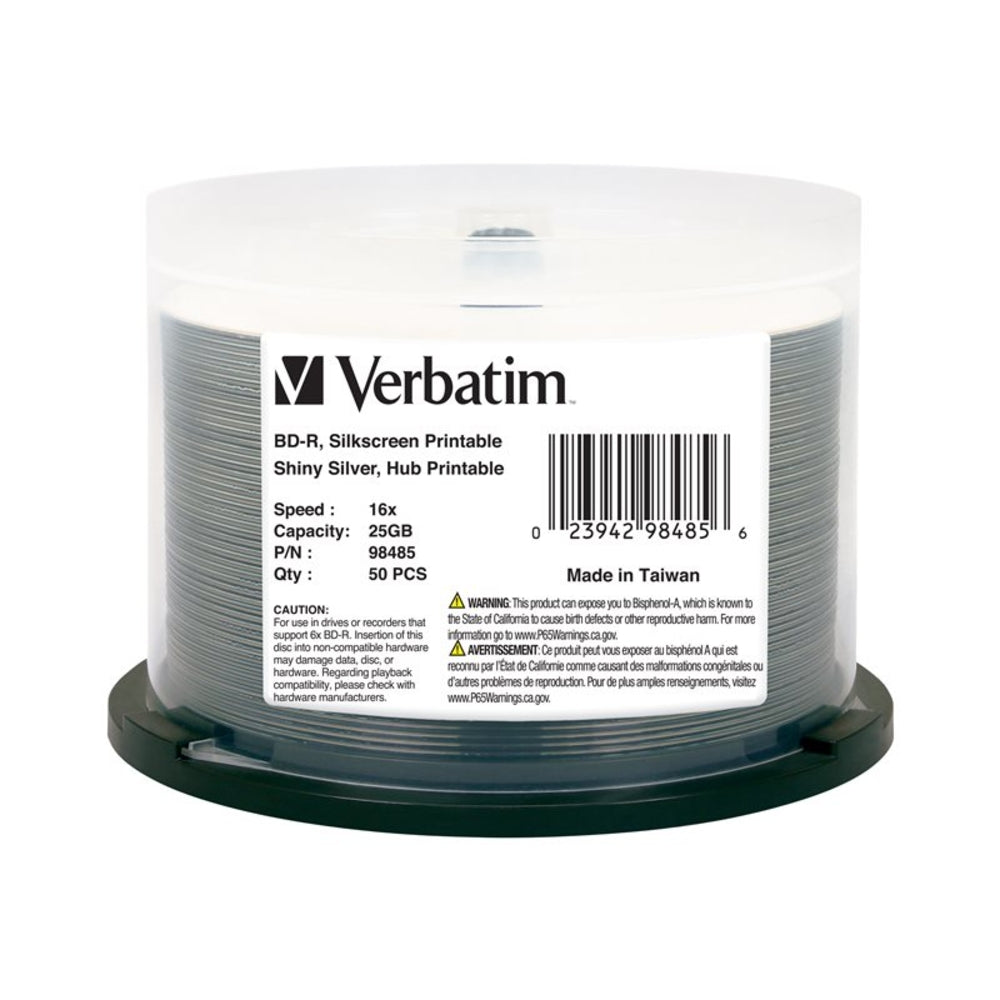 VERBATIM AMERICAS LLC 98485 BD-R 25GB 16X SHINY SILVER SILK SCREEN PRINTABLE