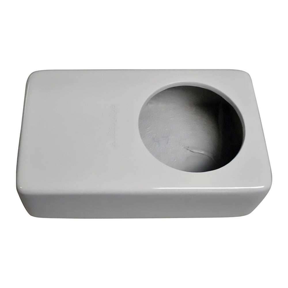 • White fiberglass speaker box that easily fits under most gunnels