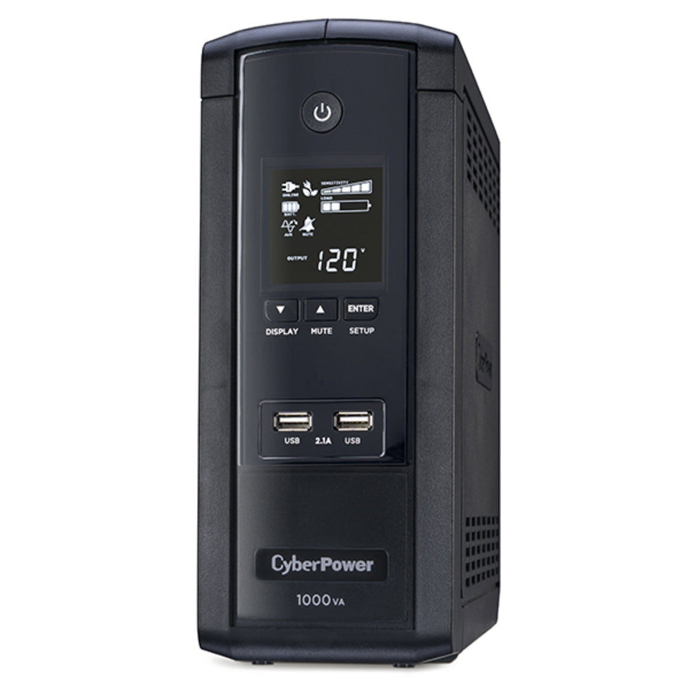 The CyberPower BRG1000AVRLCD uninterruptible power supply (UPS) is designed to safeguard PCs and other electronics from power abnormalities such as blackouts, brownouts, surges, spikes, sags, and more. With its Automatic Voltage Regulation (AVR) boost/buck technology, it delivers consistent and clean AC power, providing reliable protection for connected equipment and preventing costly business interruptions.