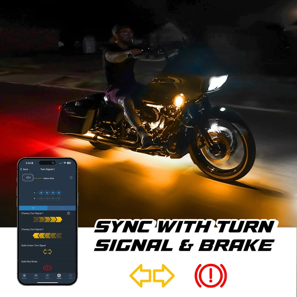 Add a touch of style and visibility to your motorcycle with the XKGlow XKmax RGB+W Motorcycle Underglow Light Kit. This app-controlled light kit includes both engine and underglow lights, allowing you to customize the look of your bike with ease.